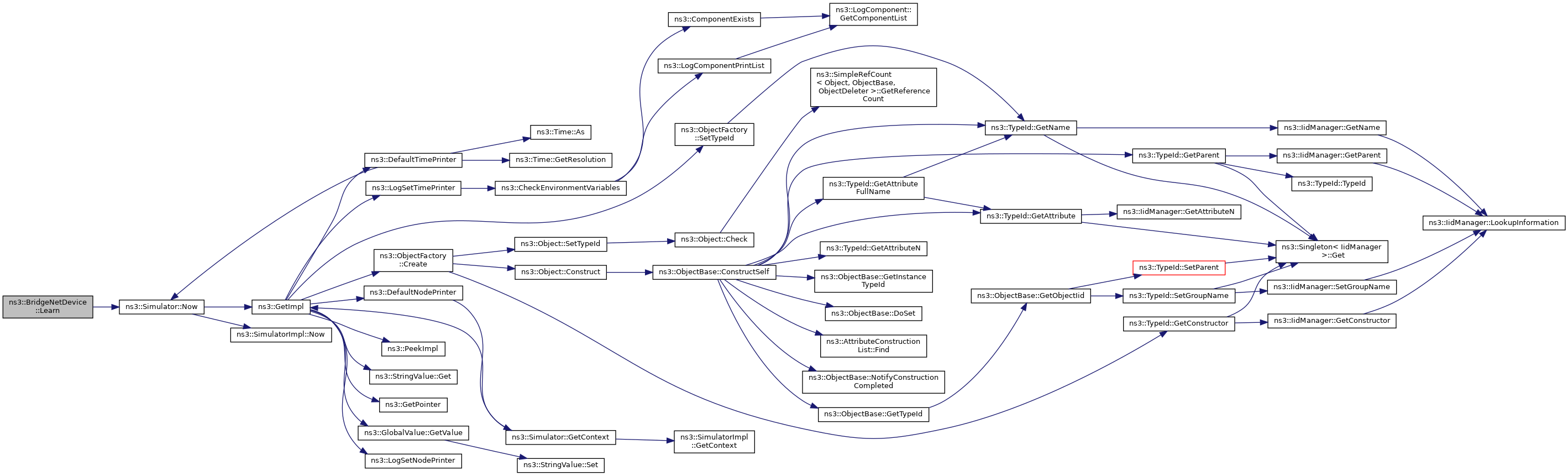 Here is the call graph for this function:| uint32_t ns3::BridgeNetDevice::GetNBridgePorts | ( | void | ) | const |