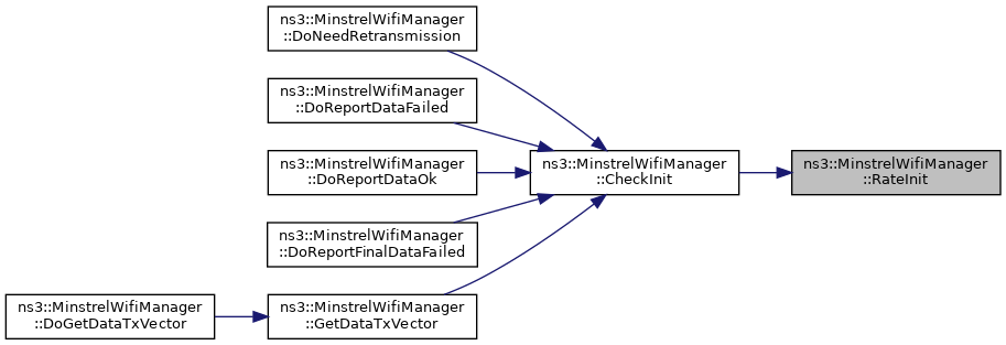 References CheckInit(), ns3::WifiRemoteStationManager::GetAggregation(), ns3::WifiRemoteStationManager::GetChannelWidth(), ns3::WifiMode::GetDataRate(), ns3::WifiRemoteStationManager::GetDefaultTxPowerLevel(), ns3::WifiMode::GetModulationClass(), ns3::GetPreambleForTransmission(), ns3::WifiRemoteStationManager::GetShortPreambleEnabled(), ns3::WifiRemoteStationManager::GetSupported(), m_currentRate, ns3::MinstrelWifiRemoteStation::m_initialized, ns3::MinstrelWifiRemoteStation::m_isSampling, ns3::MinstrelWifiRemoteStation::m_txrate, NS_LOG_DEBUG, and NS_LOG_FUNCTION.