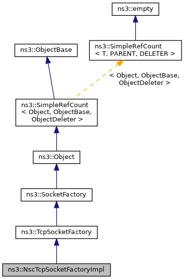 Inheritance diagram for ns3::NscTcpSocketFactoryImpl: