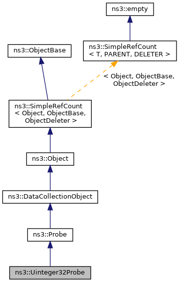 Inheritance diagram for ns3::Uinteger32Probe: