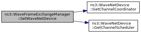 Here is the call graph for this function:| void ns3::WaveFrameExchangeManager::SetWaveNetDevice | ( | Ptr< WaveNetDevice > | device | ) |