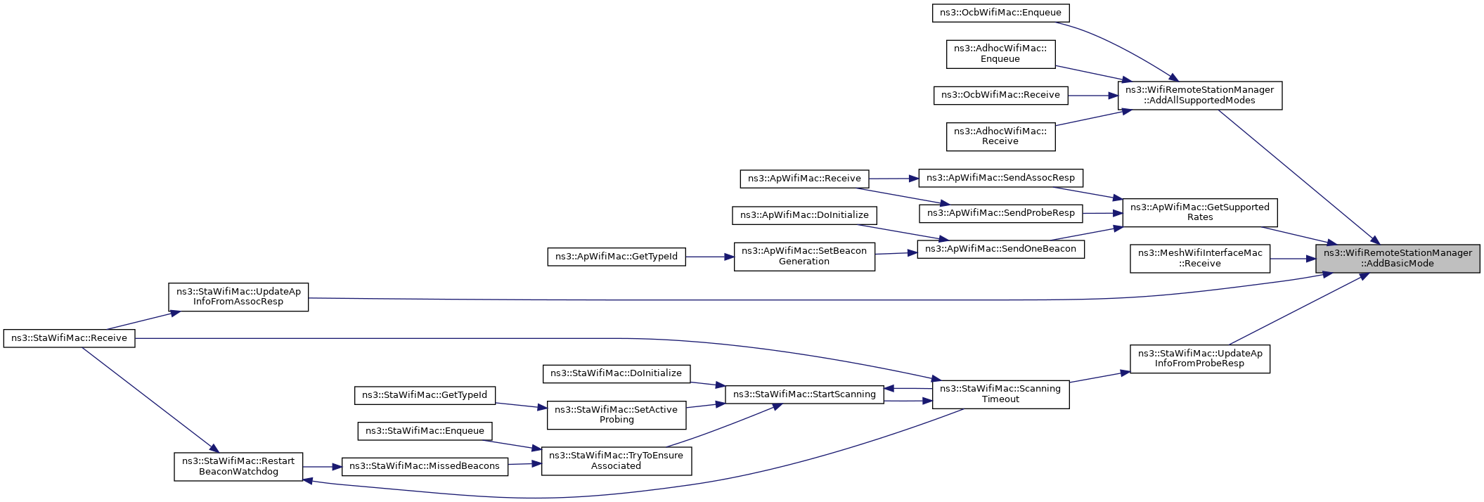 This list is constructed through calls to WifiRemoteStationManager::AddBasicMode(), and an API that allows external access to it is available through WifiRemoteStationManager::GetNBasicModes() and WifiRemoteStationManager::GetBasicMode(). basic rate set